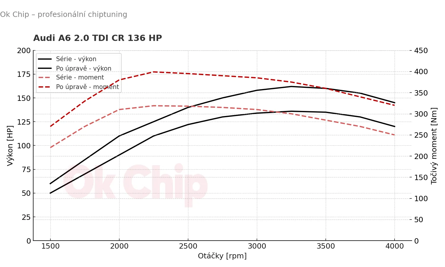 Audi A6 patří mezi špičku prémiových sedanů, které spojují elegantní design, nejmodernější technologie a komfort pro dlouhé cesty. Ve variantě s motorem 2.0 TDI CR o výkonu 136 HP (100 kW) nabízí vyvážený poměr mezi spotřebou a výkonem, ale pro řidiče, kteří hledají více dynamiky a jistoty, má tato jednotka ještě nevyužitý potenciál.