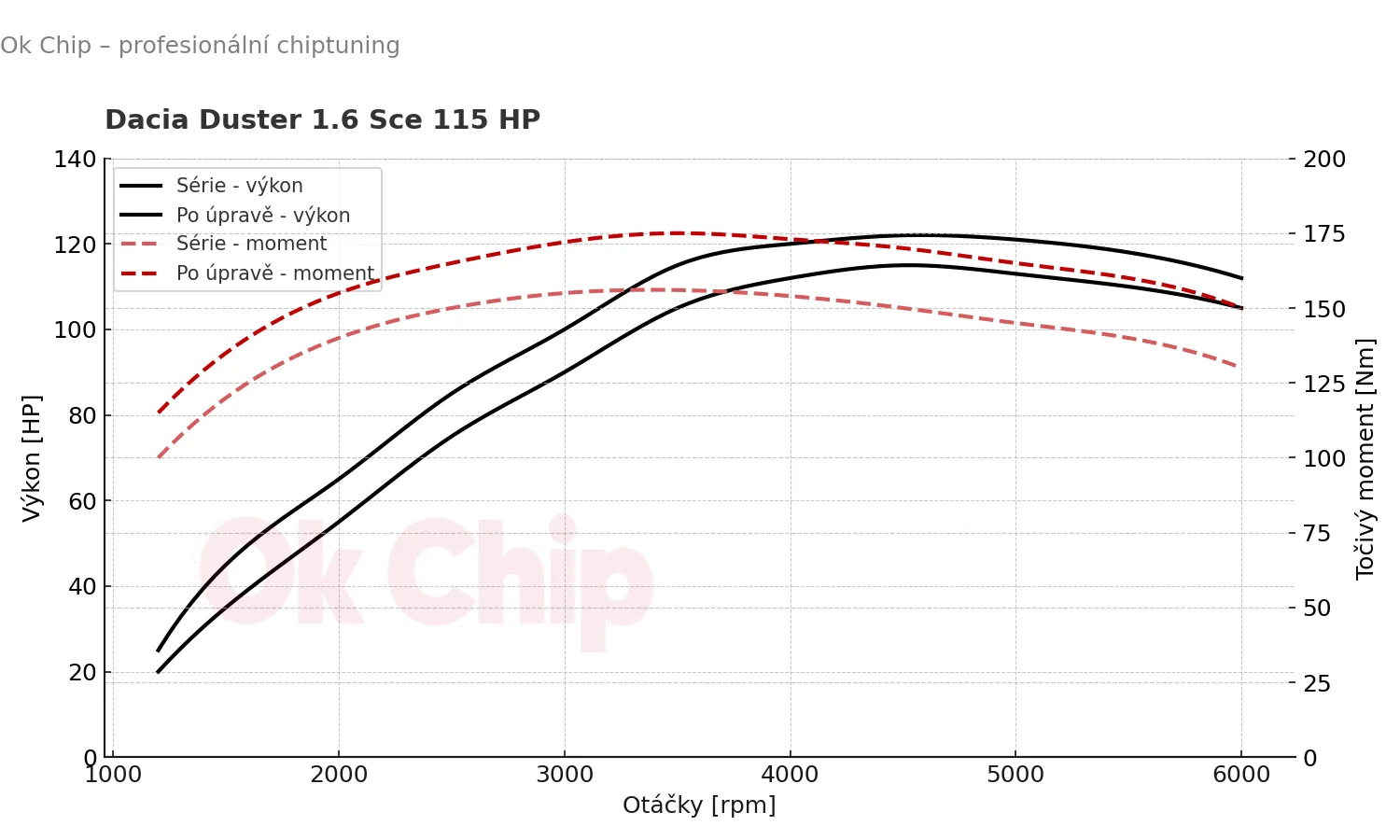 Po chiptuningu se Duster stává příjemnějším společníkem pro každodenní provoz i delší cesty. Rozjezdy jsou svižnější, předjíždění bezpečnější a jízda celkově zábavnější. Přitom si auto zachovává svou pověst dostupného a spolehlivého SUV, které vás nezradí ani v náročnějších podmínkách.