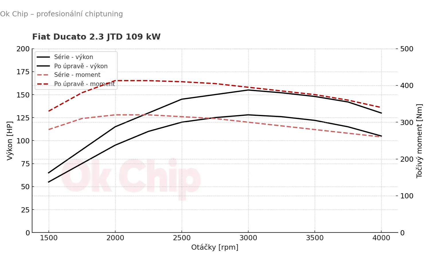 Fiat Ducato 2.3 JTD je mezi obytnými vozy pojem. Spolehlivý základ, prostorná karoserie a schopnost odvést vás tam, kam si naplánujete. Ale každý, kdo někdy s obytným vozem jel do kopců nebo předjížděl na okresce, ví, že trocha výkonu navíc nikdy neuškodí.