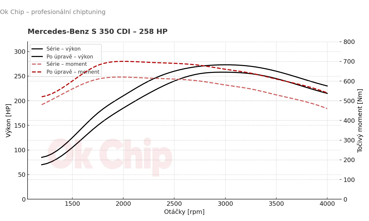 Mercedes-Benz třídy S je pojem. Auto, které definuje komfort, technickou preciznost a kultivovanost. Model S 350 CDI – 258 HP (189 kW) je mezi majiteli extrémně oblíbený právě kvůli šestiválcovému dieselu, který umí být tichý, silný a neuvěřitelně pružný. Jenže jako většina moderních turbodieselů i tenhle motor má v sobě mnohem víc, než dovolují sériová omezení.