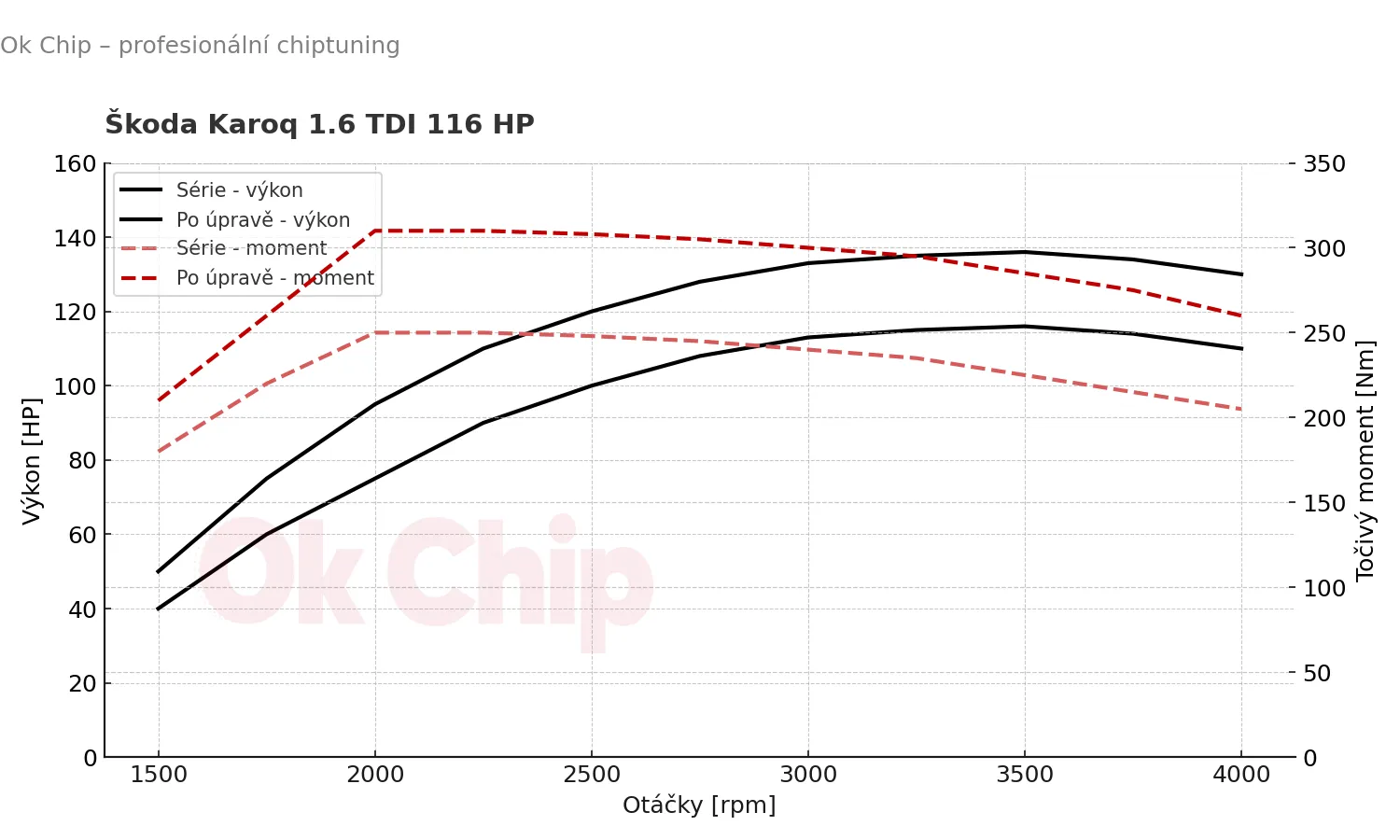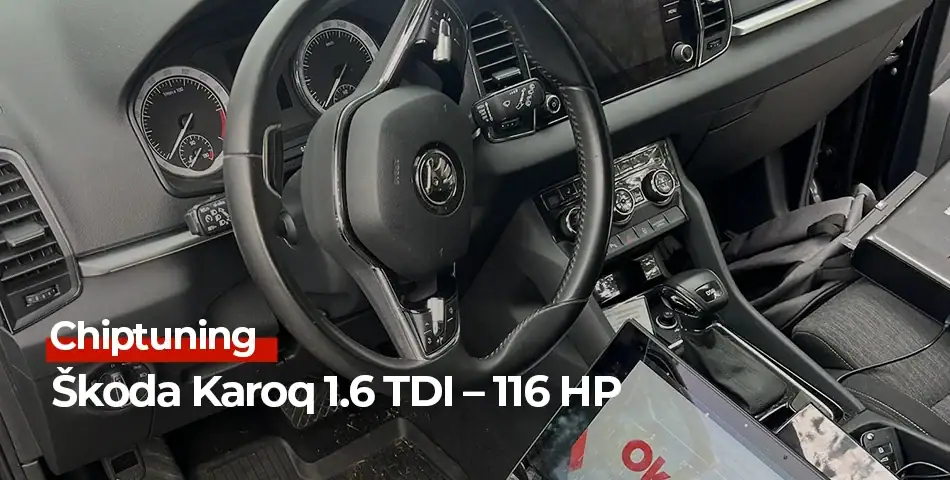 Škoda Karoq patří mezi nejoblíbenější kompaktní SUV na českých silnicích. Ve variantě s naftovým motorem 1.6 TDI o výkonu 116 HP (85 kW) nabízí příjemný kompromis mezi úsporností a komfortem. V kombinaci s automatickou převodovkou DSG je ideální volbou pro každodenní provoz i delší cesty. Přesto má tato motorizace prostor pro zlepšení – a právě to jsme využili profesionální úpravou.