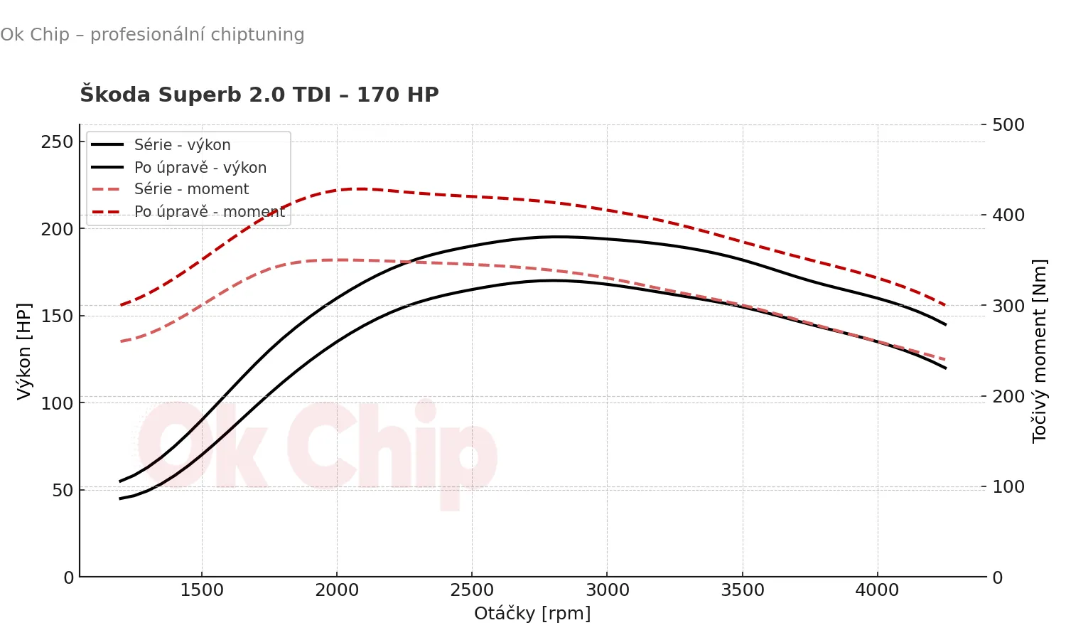 Škoda Superb s dvoulitrovým turbodieselem 2.0 TDI – 170 HP (125 kW) je oblíbený právě proto, že nabízí klid, spolehlivost a sílu, která bohatě stačí na dlouhé cesty i běžné denní ježdění. Tahle verze se dodávala zejména s motorem CFGB/CFHC, který už z továrny patřil k tomu nejlepšímu, co koncern v té době nabízel. Jenže jako mnoho moderních turbodieselů, i tento motor má v sobě mnohem víc, než dovoluje sériové naladění.